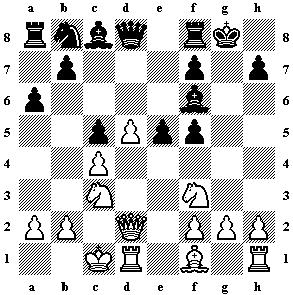 Schwarz.) 13. ... b4 14. Sa4 Da5 15. b3, doch bestand das geringere Übel in 12.