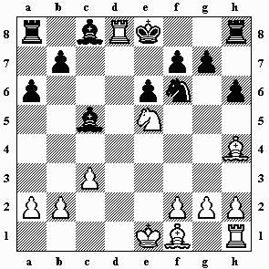 13...Kxd8 14.Sxf7+ Ke7 15.Sxh8 g5 16.Lg3 Se4? Beschleunigt die Aufgabe. 16...b5 war normal.